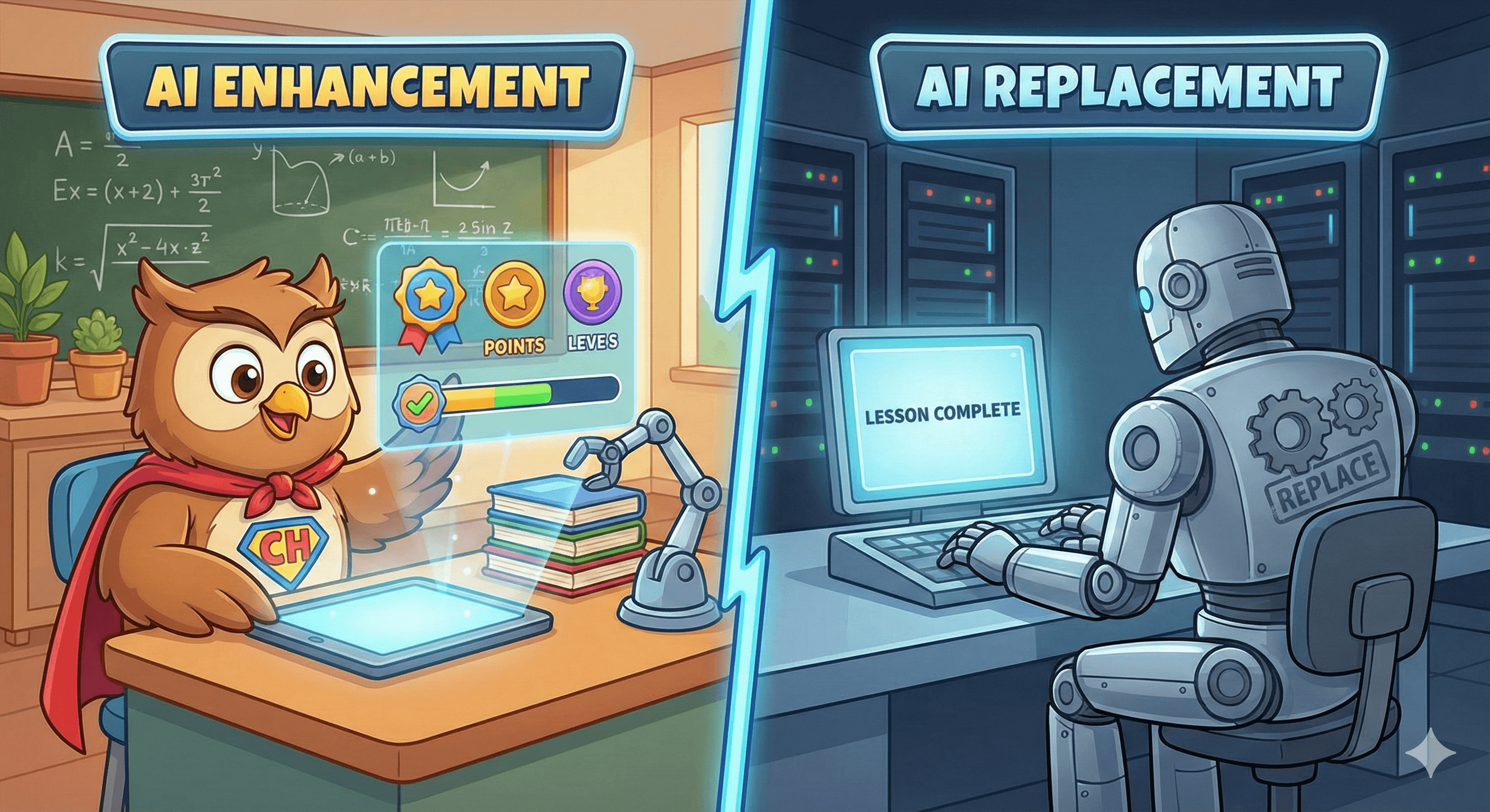 The contrast between Alpha School and Classroom Hero highlights two very different philosophies of AI in education: